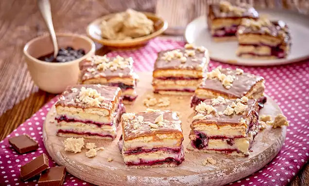 Blachę o wym. 25 x 35 cm wyłóż papierem do pieczenia. Na dno poukładaj warstwę herbatników.