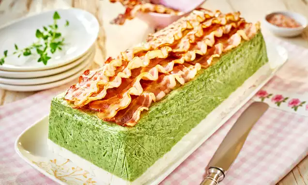 5 listków żelatyny namocz w zimnej wodzie (zanurzając jeden po drugim). Plastry łososia pokrój na drobne kawałki. Śmietankę i serek podgrzej w garnku i wymieszaj, aż do rozpuszczenia serka. Po 5 minutach odsącz listki w dłoni. Dodaj listki żelatyny, łososia i koperek. Dokładnie wymieszaj. Przygotowaną masę wylej do formy wyłożonego folią spożywczą o wymiarach 18 cm x 18 cm. Odstaw do delikatnego stężenia. Gdy masa zacznie tężeć, ułóż na niej równomiernie pumpernikiel. Odstaw mus do lodówki na kilka godzin, do całkowitego stężenia. Wyłóż mus na deskę, obracając naczynie do góry dnem. Pokrój (najlepiej gorącym nożem) na 16 porcji. Na każdą połóż kawałek galaretki z ogórka.