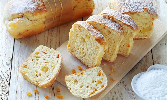 Do 400 g przesianej mąki dodać drożdże instant, sól, cukier, cukier wanilinowy, jajko, mleko. Ciasto zagnieść do gładkiej konsystencji. Margarynę utrzeć z pozostałą mąką i zagnieść z wyrobionym ciastem. Następnie dodać skórkę cytrynową, ananasy i rodzynki. Całość wymieszać, a następnie odstawić do wyrośnięcia. Podzielić ciasto na dwie części, uformować podłużne strucelki. Ułożyć na blaszce wyłożonej papierem do pieczenia.
