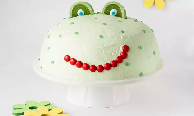 Połową kremu posmaruj równomiernie tort. Resztę kremu przełóż do rękawa cukierniczego. Do dekoracji możesz użyć końcówki, która ma kilka malutkich otworków lub takiej z jednym małym otworem. Nakładaj krem tak, by na torcie powstała czupryna, brzeg i wierzch tortu udekoruj pozostałymi oczami z polewy. Na koniec wbij w tort wcześniej przygotowane ufoludki.