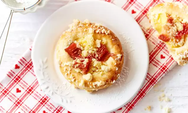 Mieszankę do wypieku ciasta wsyp do miski, dodaj margarynę, jajka i mleko. Całość miksuj początkowo na niskich, a następnie na wysokich obrotach przez ok. 3 minuty. Ciasto rozłóż równomiernie w wysmarowanej tłuszczem lub wyłożonej papierem do pieczenia okrągłej formie o średnicy 24 cm.