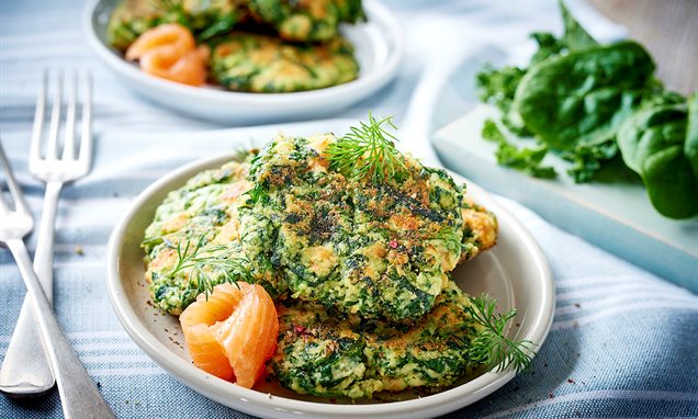 Smaż na rozgrzanym tłuszczu z obu stron na złoty kolor. Podawaj z łososiem i koperkiem.